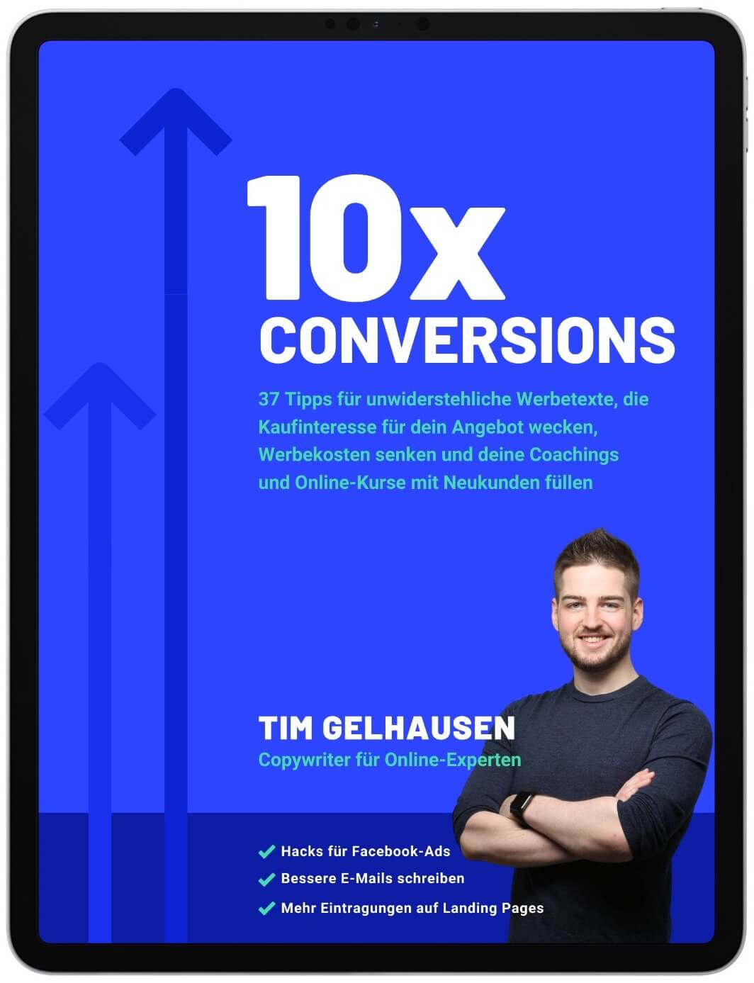 Hier kannst du 10x Conversions als PDF, epub und für den Kindle herunterladen. Du hast auch gerade deine Rechnung per E-Mail erhalten.