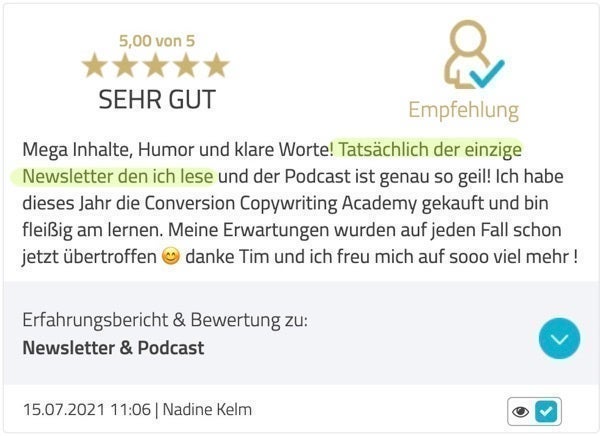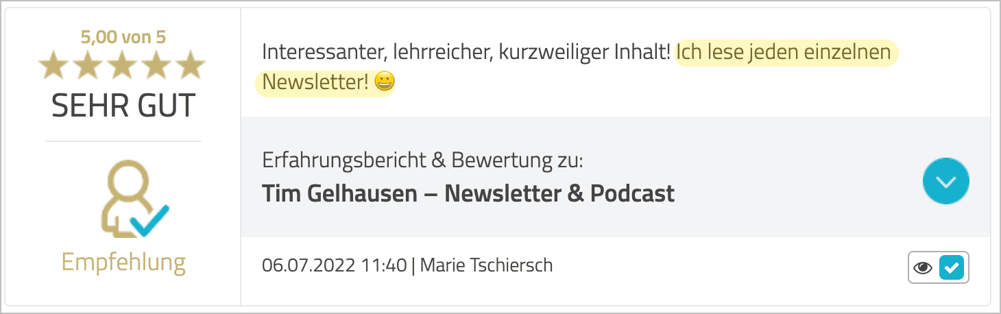 „Der einzige Newsletter, den ich IMMER lese."